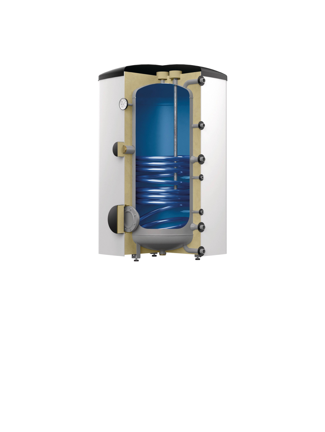 Réservoir en acier S235JR+AR, fabrication conforme DIN EN 12897 et directive Équipements sous pression 2014/68/UE. Émaillage intérieur selon DIN 4753 T3 pour une qualité d’eau potable irréprochable.Isolation synthétique haute performance
